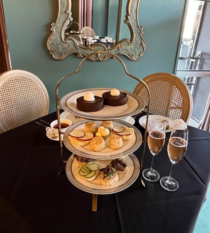 The original afternoon tea! Traditional tea sandwiches, English scones, a selection of dainty treats, and classic dark chocolate mousse. Usually includes the very English coronation chicken filling.